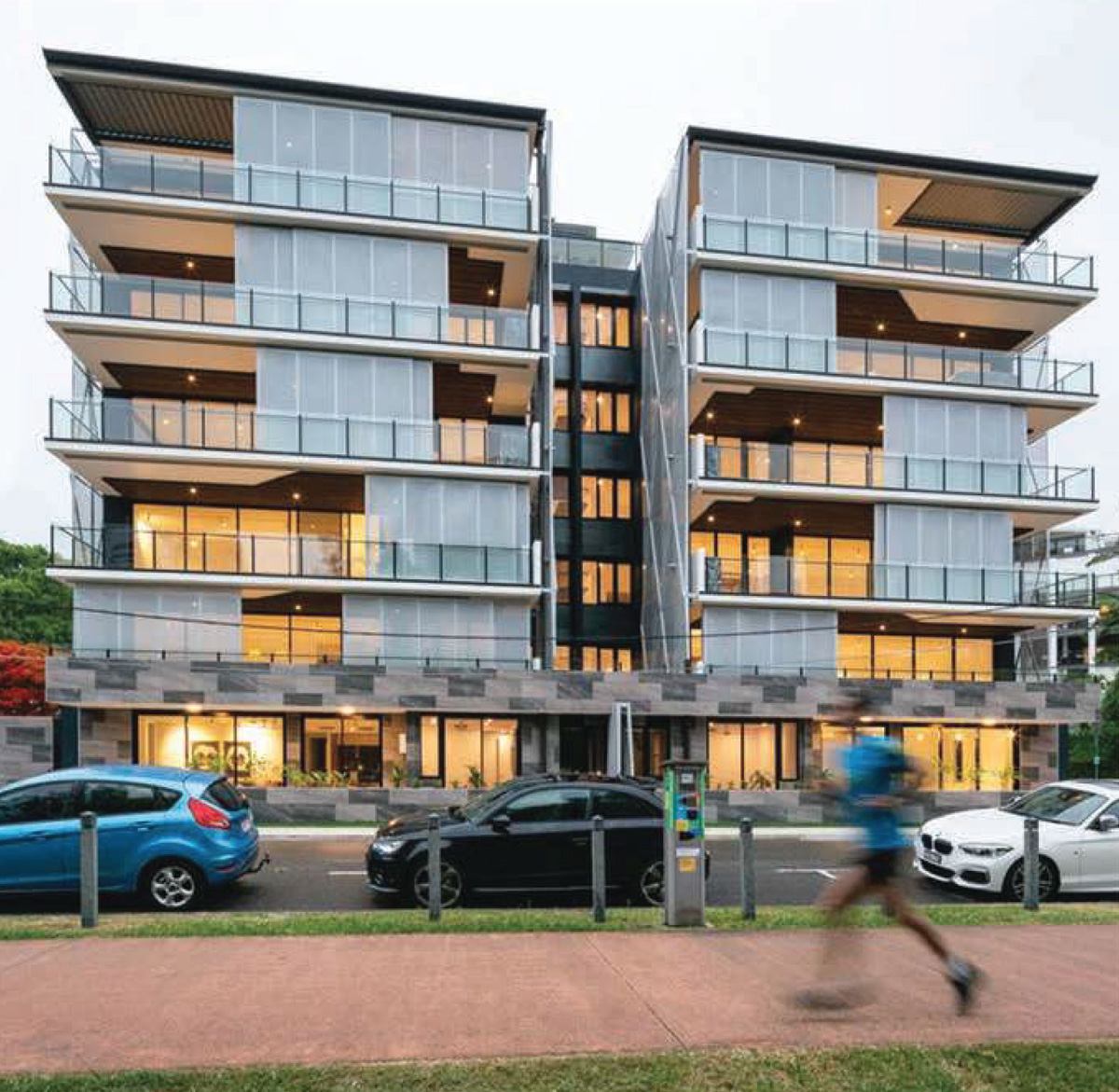 Rising elegantly across six residential levels and crowned by two exclusive penthouse-style apartments, Parklane Apartments embodies modern sophistication and coastal luxury. The building’s architectural expression is defined by clean lines, a contemporary façade, and thoughtfully integrated timber batten feature walls and ceilings that add warmth and visual interest. Extensive glazing maximises natural light and frames sweeping ocean views, while expansive balconies create seamless indoor–outdoor living.