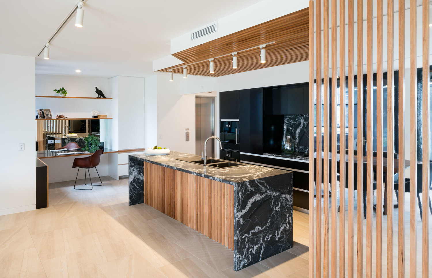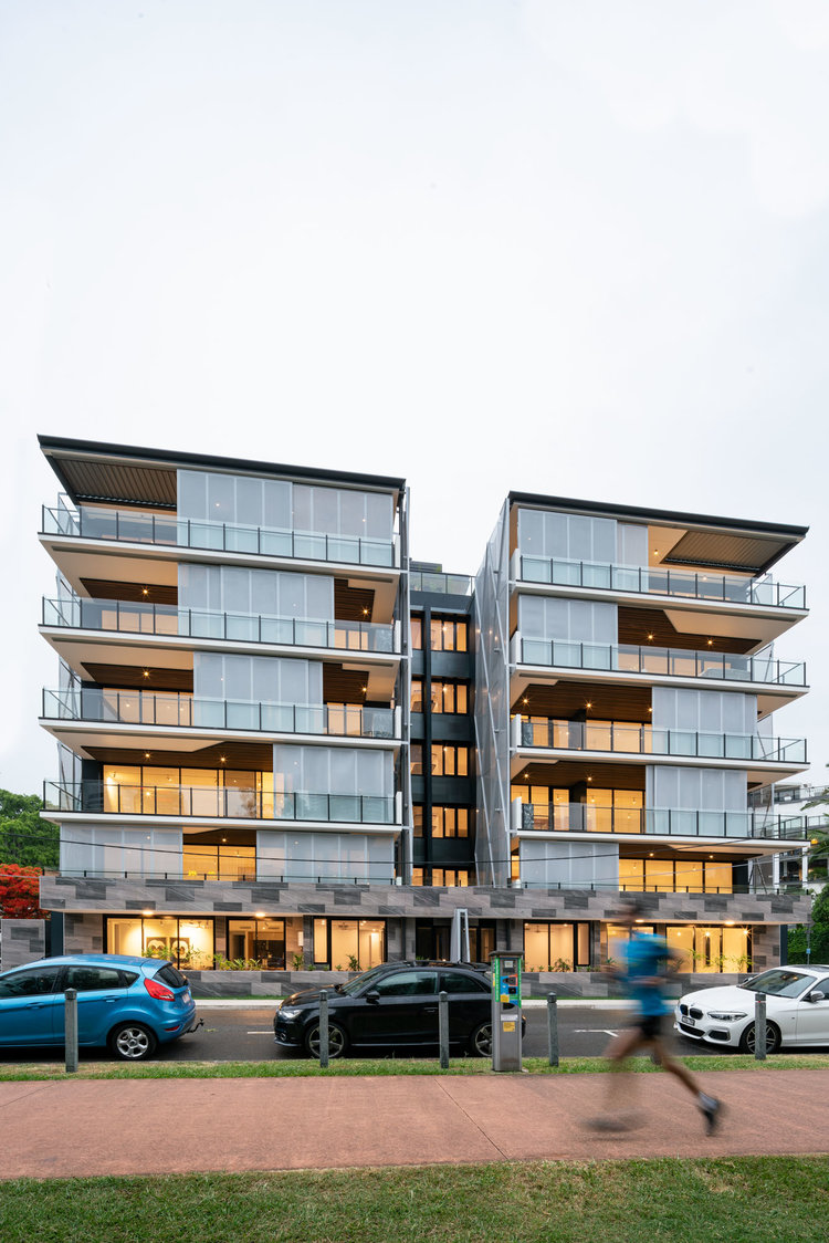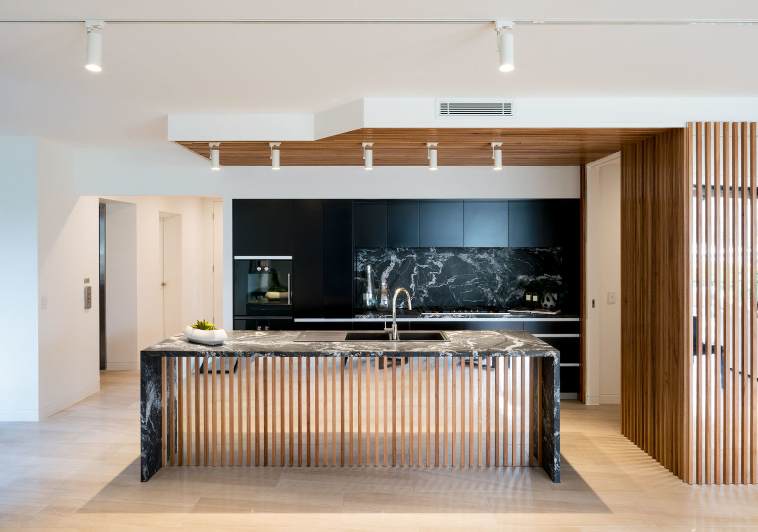 Rising elegantly over six residential levels with two exclusive penthouse-style apartments crowning the development, Parklane Apartments embodies modern sophistication and coastal luxury. The building’s architectural form is defined by clean lines, a contemporary façade, and carefully integrated timber batten feature walls and ceilings that create both warmth and visual interest. Extensive glazing maximises natural light and captures sweeping ocean views, while expansive balconies provide seamless indoor–outdoor living spaces. Inside, each residence is crafted with meticulous attention to detail, featuring custom cabinetry, natural stone benchtops, and premium finishes throughout. The design balances aesthetics with functionality, creating a sense of openness while ensuring privacy and acoustic comfort. Residents also benefit from advanced amenities including premium car stacker systems, secure basement parking, and private lift access, offering both convenience and exclusivity.